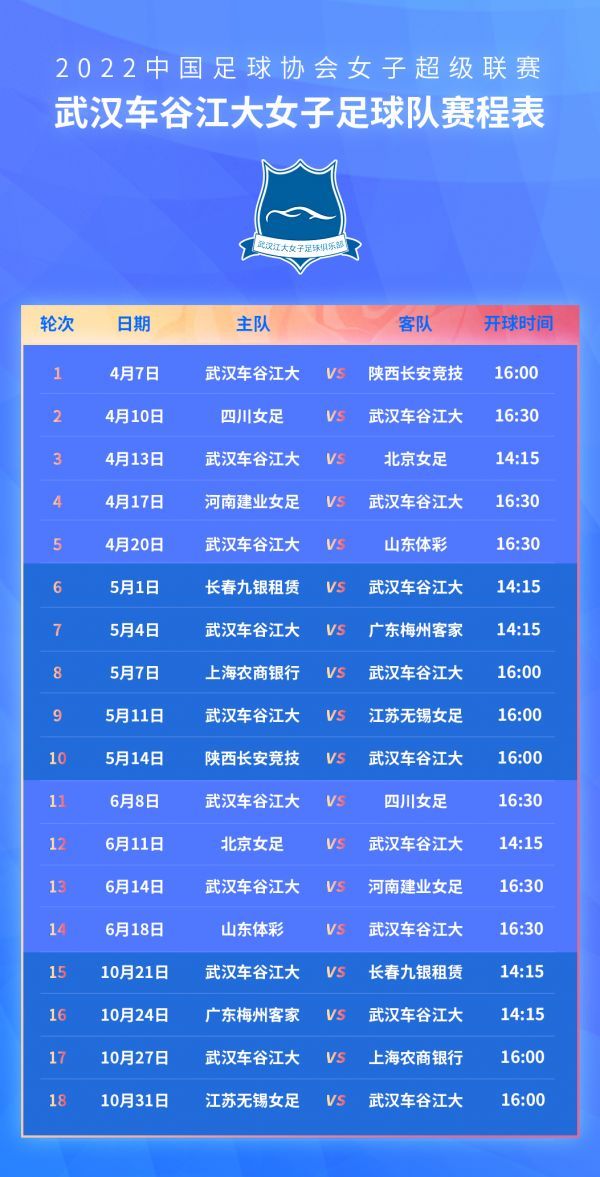 从赛程上看,武汉女足将遭遇一个“先易后难”的过程,在两个循环的最后两战中将连续遭遇劲敌上海女足和江苏女足。这也意味着如果不能在前16轮比赛中取得足够的积分优势,武汉女足就势必在最后两轮中迎来“天王山之战”。