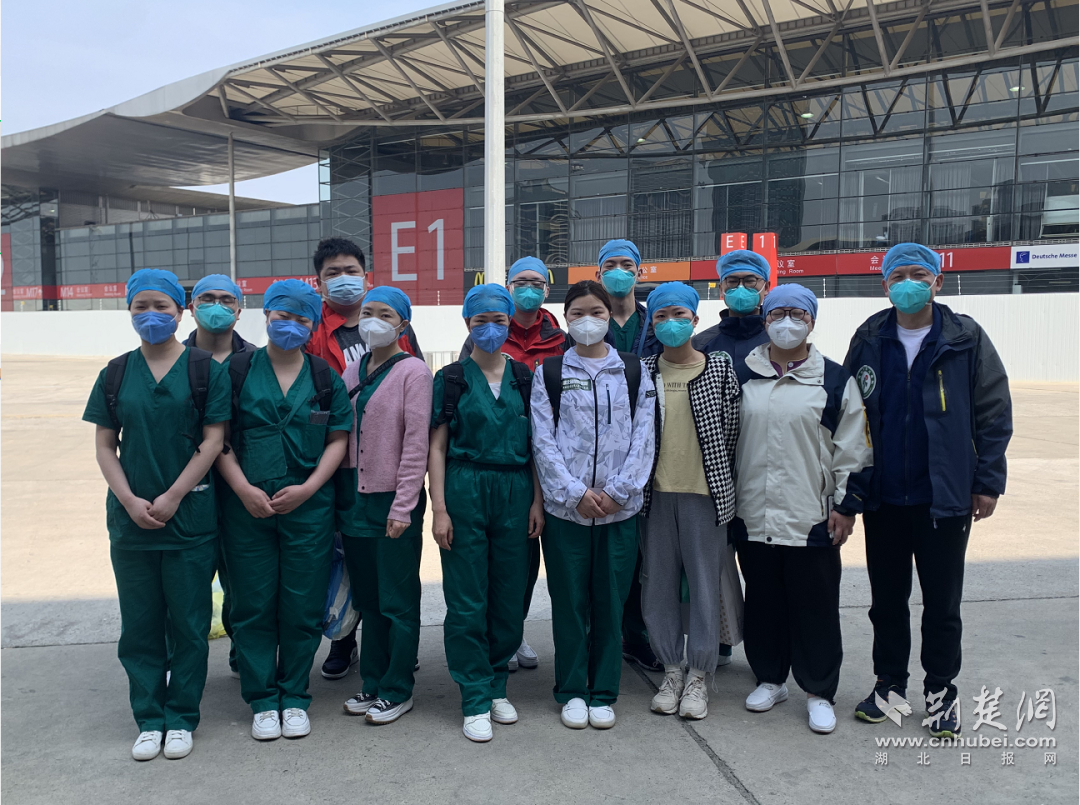 4月6日下午2点,湖北援沪医疗队二组正式进驻上海新国际博览中心方舱医院。经过短暂休整和全员强化防护培训,省荣军医院首批三名同志随队进入方舱工作。