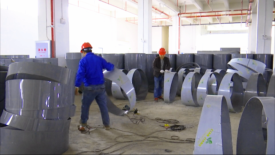 与此同时,位于孝昌县开发区的湖北全成信精密电路有限公司车间内,工人们正忙着制作安装废气管道,为接下来的投产做准备。