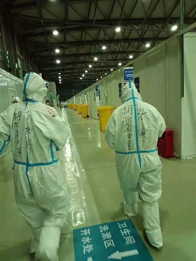 杨晶说,目前上海昼夜温差较大。夜里三点多出舱的她说,大家进舱后很快防护服内的衣服就全部汗透,随着夜间气温下降,湿透的衣服又让大家冷得不停打寒战,尽管如此,每一个医疗队员都依然尽职尽责完成各项工作任务,舱内患者对湖北医疗队队员都赞不绝口。