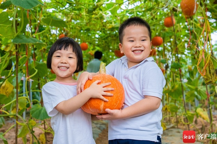 小朋友抱起采摘的南瓜。记者 李昊 摄