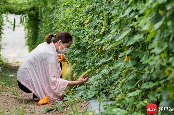 四月春潮涌动,崖州古城枕海壁立。在三亚市崖州区的国家现代农业(种业)产业园农作物新品种新技术田间展示推广中心(以下简称推广中心),甜瓜、番茄、辣椒、茄子、豆角等都已成熟结果,工人们正忙着在田间采摘,周边的市民们也纷纷前往,加入采摘的队伍当中。