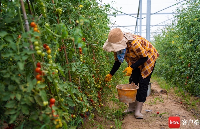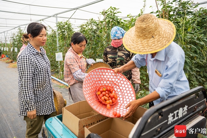 工作人员将采摘的小番茄打包。记者 李昊 摄