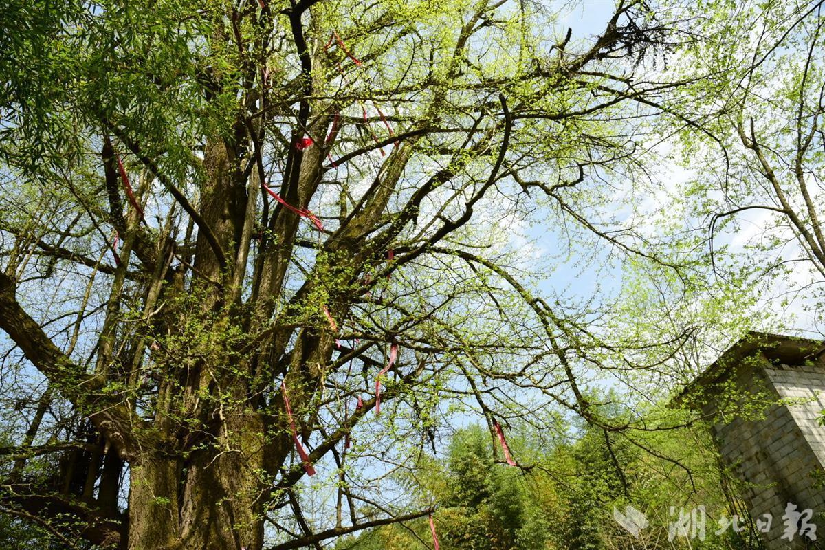 4月的咸丰,满目绿影,大地山川,焕发新颜。4月11日,笔者在咸丰县高乐山镇白果坝村看到,4棵百年银杏树发芽吐绿,尽显生机。