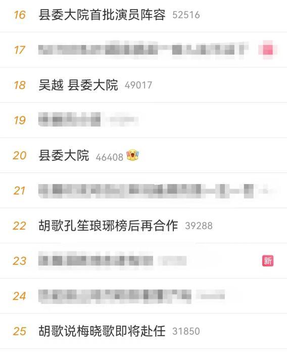 据出品方介绍,《县委大院》讲述了县委书记梅晓歌(胡歌 饰)与同僚们团结民众共建光明县的故事。