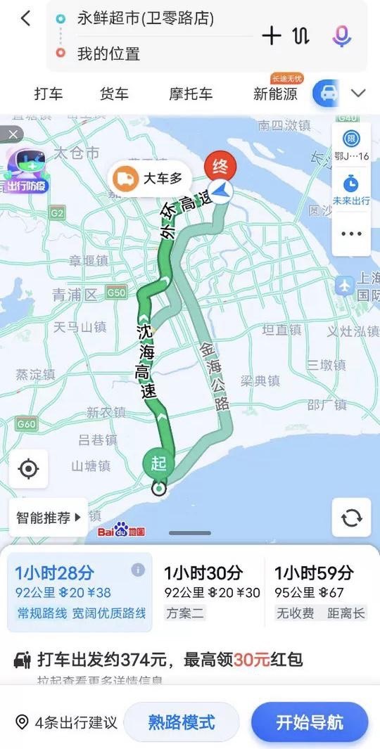 孙思祥这一趟的目标是将一批生鲜物资从金山运回上海城区。就在1天之前,饿了么宣布两千多名骑手将陆续返岗的消息,孙思祥看到了骑手志愿者的招募信息后,主动报名参与了“应急特需”骑手招募。很快,他的申请获得了通过,孙思祥成了“特需老人物资配送专车”的一名专职司机,他需要每天自驾汽车为上海市区内特别急需生鲜物资的独居老年定向配送。