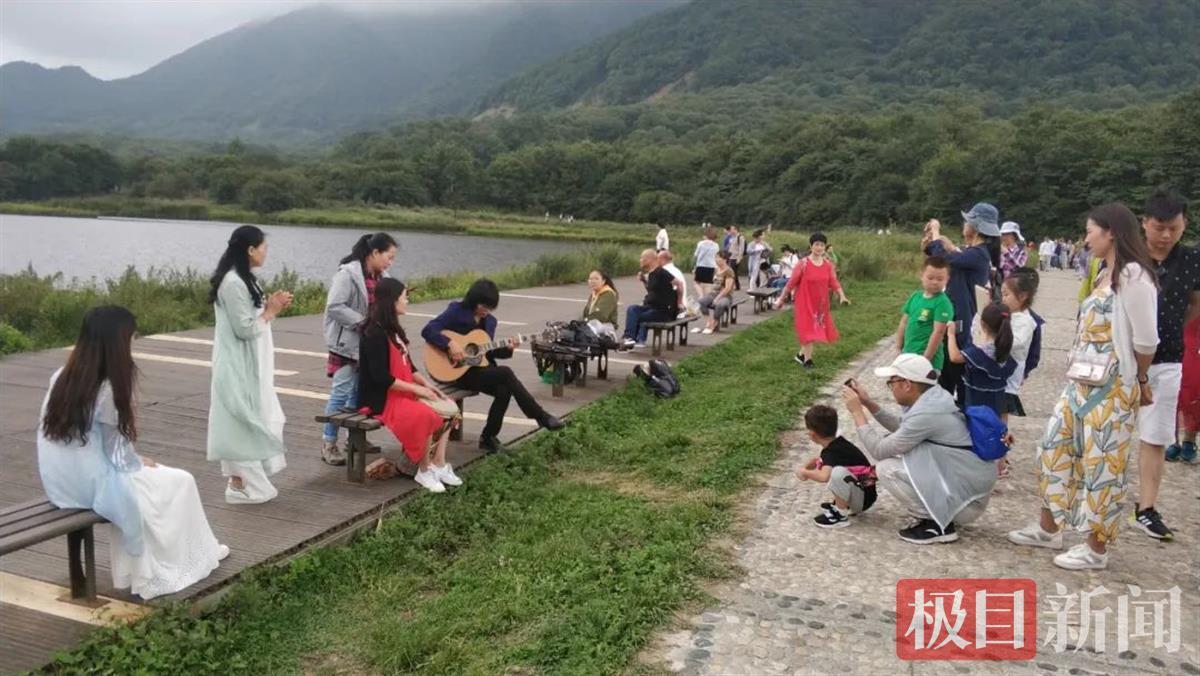 一位游客这样讲述,融入仙境中的九湖姑娘的歌声:从大九湖观景台下来,我还陶醉于缭绕晨雾之中,这时有若即若离、若有若无的柔美歌声飘进我的耳朵,循着歌声的方向,我走进湖边一间风雨亭,在人群里,见到几位姑娘,正深情地自弹自唱《愿你三冬暖》,这初秋时节,听得人柔肠寸断……