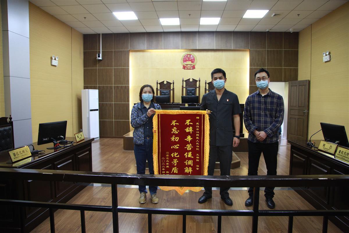 湖北日报讯(记者刘畅、通讯员陈亚莉、王朝阳)“盼了20年的房产证终于拿到了,感谢王法官圆了我们的心愿。”4月13日,一起房屋买卖合同纠纷案件的当事人,87岁的刘某某由女儿代劳将写有“不辞辛苦促调解,不忘初心化矛盾”的锦旗送到汉阳法院民一庭法官王朝阳手中。