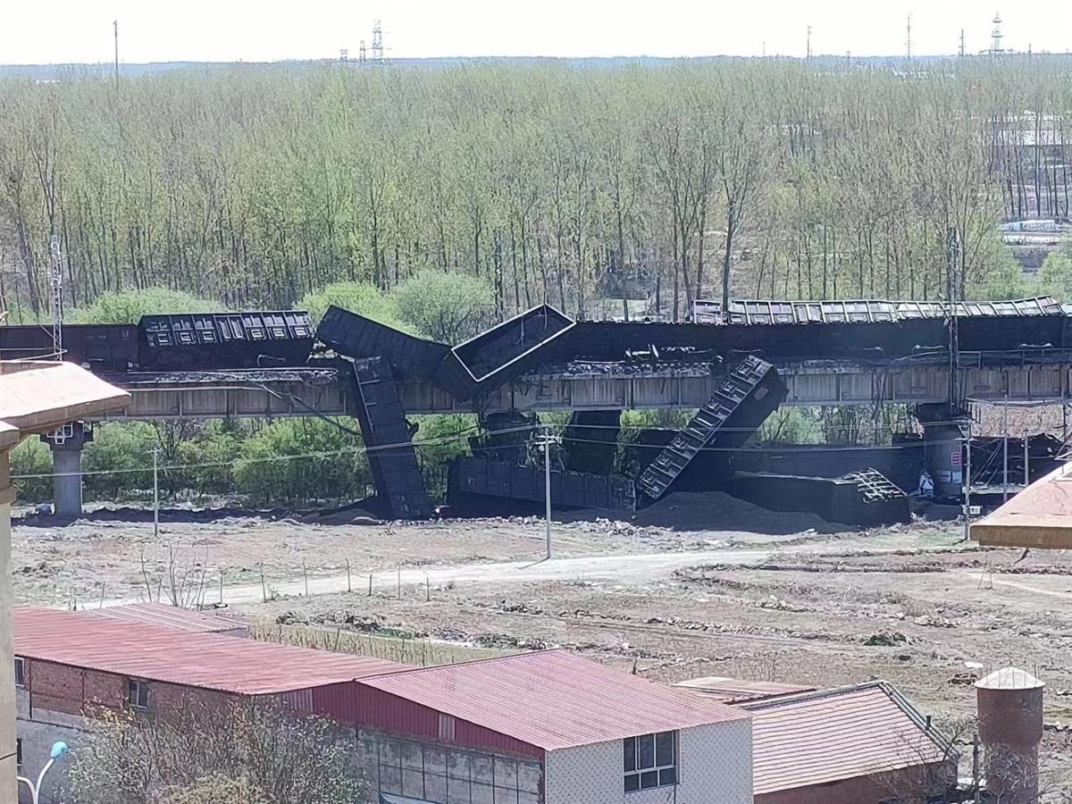 事发地位于蓟州区州河湾小区附近。据该小区一商户告诉极目新闻记者,该小区较大,分好几块区域,事故地点离西区最近。据该商户提供的照片和视频,极目新闻记者可以清晰地看到,有许多节车厢坠落到铁路桥下空旷的土地上,有的车厢里还有少量煤炭,有的空空如也,旁边则有成堆的煤炭。