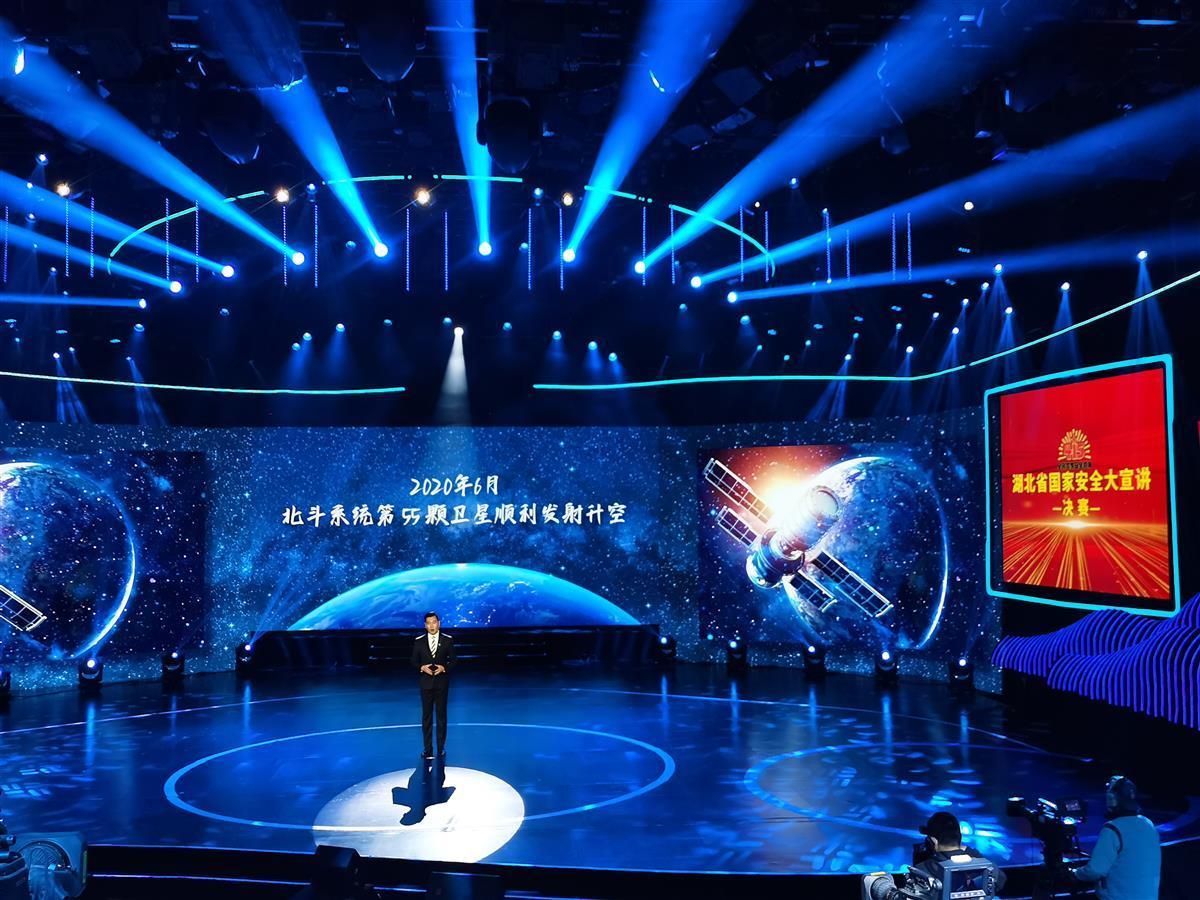 4月13日,在我国第七个全民国家安全教育日来临之际,全省国家安全大宣讲决赛在汉举行,来自武汉大学的宣讲员宋博讲述了北斗研发背后鲜为人知的国家安全。