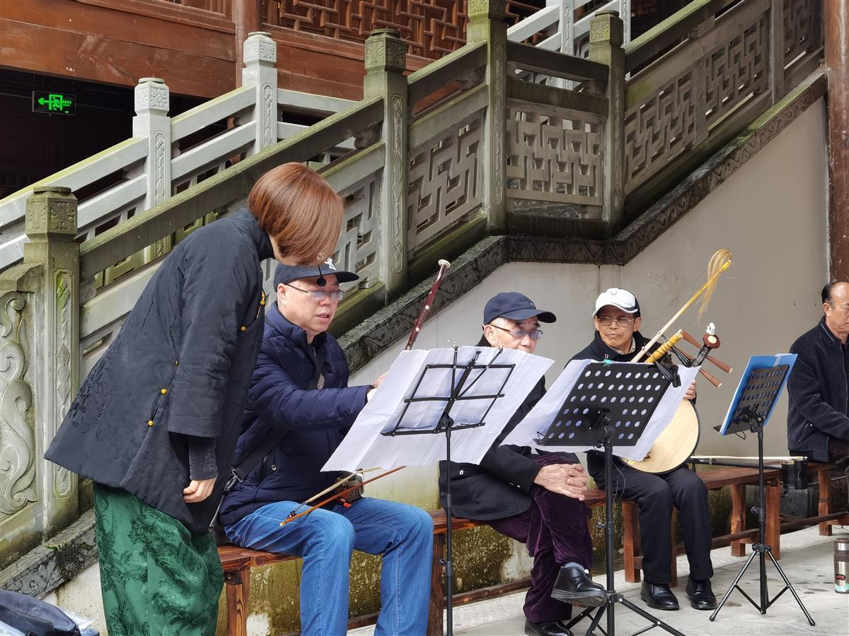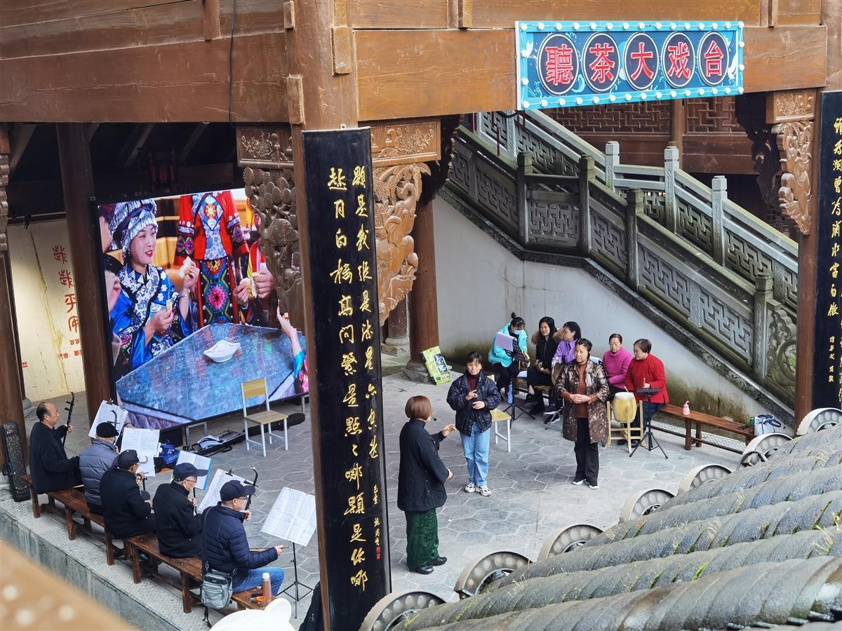 4月17日,宣恩县城墨达楼大戏台,戏友正在排练南戏折子戏《打鱼救生》。据该戏李编导介绍,本戏是在宣恩县非物质文化遗产保护中心组织下,进行抢救性复排,距上次演出已经30年。