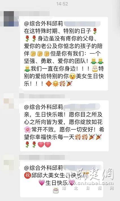 16日下午,邱莉带着大家的生日祝福,步入方舱开始工作。“今年许了个愿望就是希望疫情早日结束,我们能够早日回家,也希望我的3个宝贝能够为妈妈骄傲。”