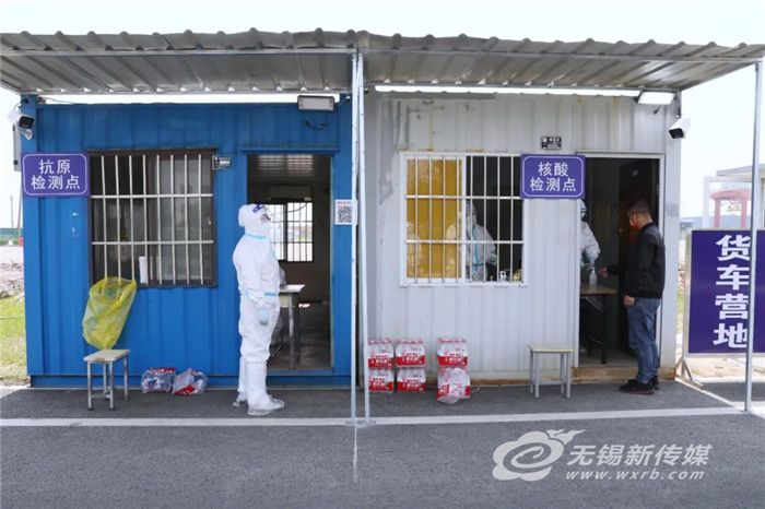 昨天(18日)上午10点,记者来到位于城南路239号的无锡高新物流空港园区“货车营地”,这里不时有卡车进出,为附近S19、G42高速公路出口下来的外地货车提供全天候服务。记者“全副武装”化身“大白”跟随工作人员来到“货车营地”内部,从大门进入首先是核酸检测区,每隔10米就有一名保障人员值守。“货车司机每天必须在这里进行一次核酸检测,做完采样后立刻回到自己的车上,保障人员在现场监督整个流程的执行。”营地现场负责人贾建国向记者介绍。