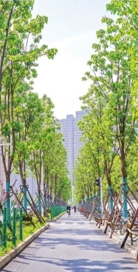 铁机路上首次开花的楸树。 记者肖茗予 摄