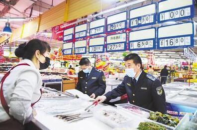 4月16日,在邢台经济开发区家乐园超市,邢台市市场监管局执法人员对蔬菜、肉类和水产等进货票据、销售台账、价格管理等情况进行监督检查。