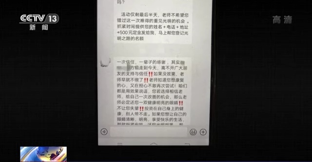 在陶女士花费数万元购买多个疗程后,这所谓的专家变脸了,连信息都不再回复。在民警回访的被害人中,和陶女士一样,同在南通的葛先生也有着如出一辙的遭遇,他也是被眼疾困扰多年,同样也是在网络里结识了一名声称能治疗眼疾的神医。