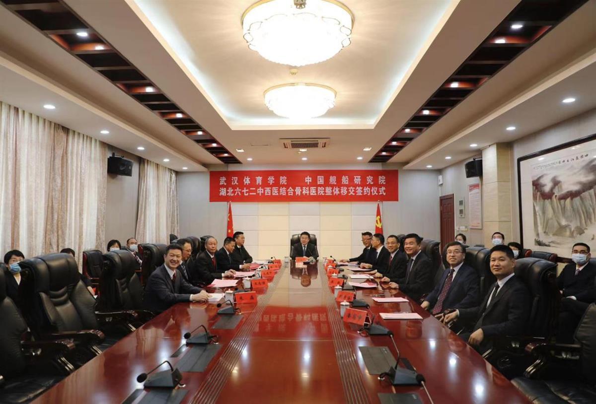 签约仪式上,武汉体育学院和中国舰船研究院双方代表签订《湖北六七二中西医结合骨科医院整体移交协议》和补充协议,逐项落实人、财、物权属变更事务,妥善协调处理移交协议生效前后过渡期的相关问题,确保六七二医院移交平稳过渡。