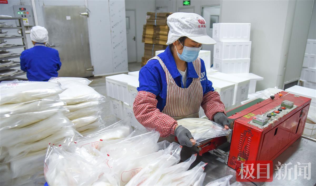 工人在生产线上封装铁牛饼成品(极目新闻记者 黄志刚 摄)