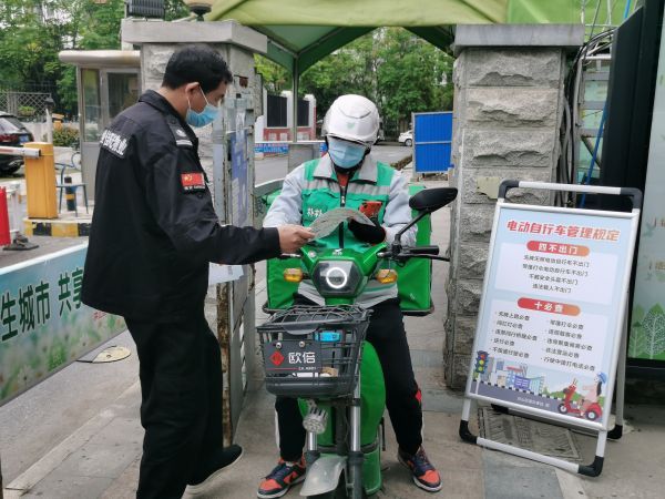 社区、物业主动宣传交通安全守法出行。 通讯员张鹏 摄