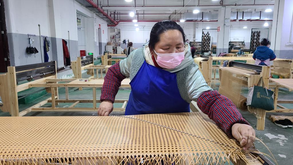 2018年杨国超和妻子返乡创业,在老家带着几个村民开始编花篼,当年就带动50多名建档立卡贫困户就业。杨国超介绍,目前工厂每天都有百来人上班,工人一个月计件工资最多的能拿到6000多元,平均工资在4200元左右。