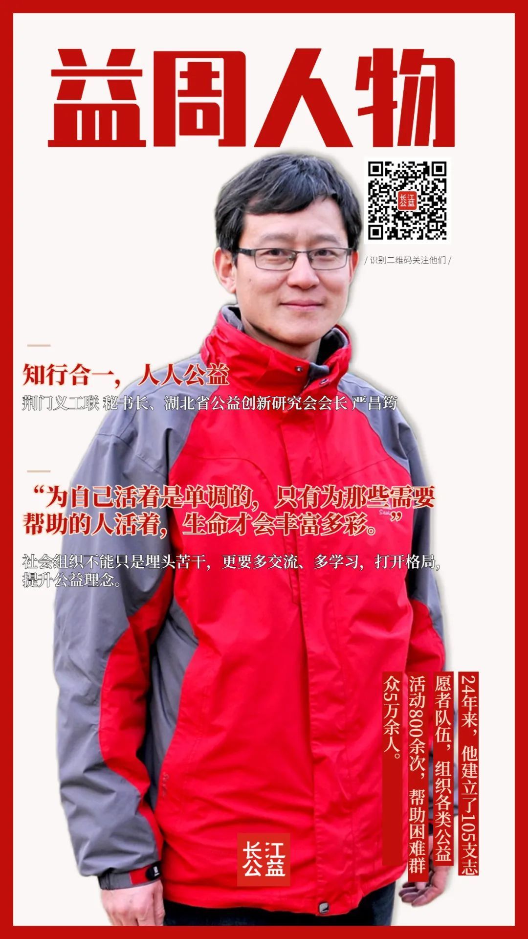 24年来,他号召各企事业单位和社区建立起105支志愿者队伍,带领义工队伍踏遍荆门66个社区和100多个村组,组织各类公益活动800余次,帮助困难群众5万余人。