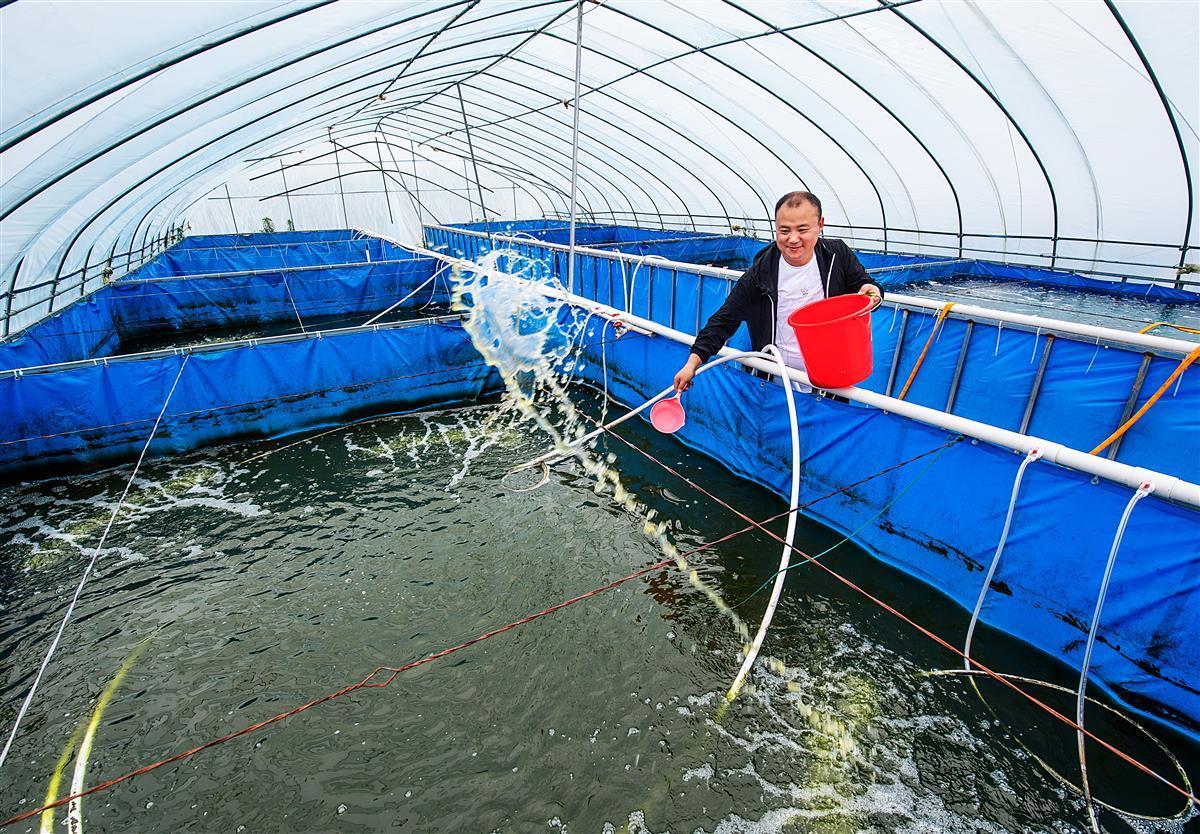 据介绍,该基地配置5个保温养殖大棚,占地2000平方米,共有40个养殖池,目前,已投放第一批虾苗,数量达80万尾,本月就可上市,年产值预计达到100万元。
