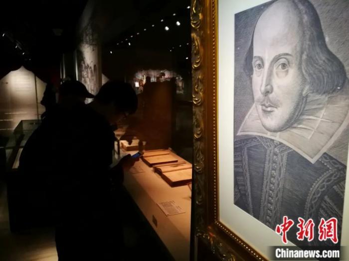 参观者在中国国家图书馆内观看展出的莎士比亚作品手稿。中新社记者 应妮 摄