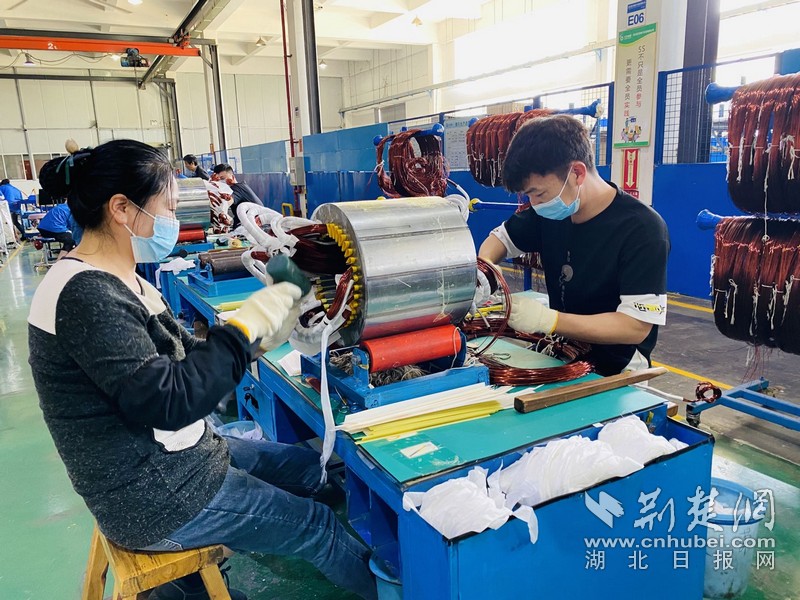 在武汉安兰斯电气科技有限公司生产车间,工人师傅正在抓紧生产大型中央空调配套的特种电机。企业现阶段订单源源不断,市场需求旺盛,有效促进企业良性发展。