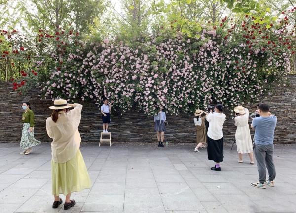有网友在网络平台分享园博园蔷薇花墙信息,“可以来这个小众蔷薇花海,整整一面花墙开得很浓密”“时而有微风拂过,花瓣随风飘落,和朋友们在这里度过了一个浪漫的下午”。