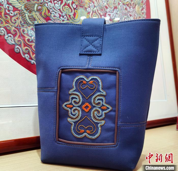 记者发现,许多产品随着马尾绣的加入非但不突兀,反而有一种恰到好处的感觉,比如西装布料的手腕包,加入马尾绣工艺后不仅时尚百搭,还显得华丽精致。此外,色彩斑斓的马尾绣与银饰结合制成现代化饰品,古朴厚重却不失时尚之韵。