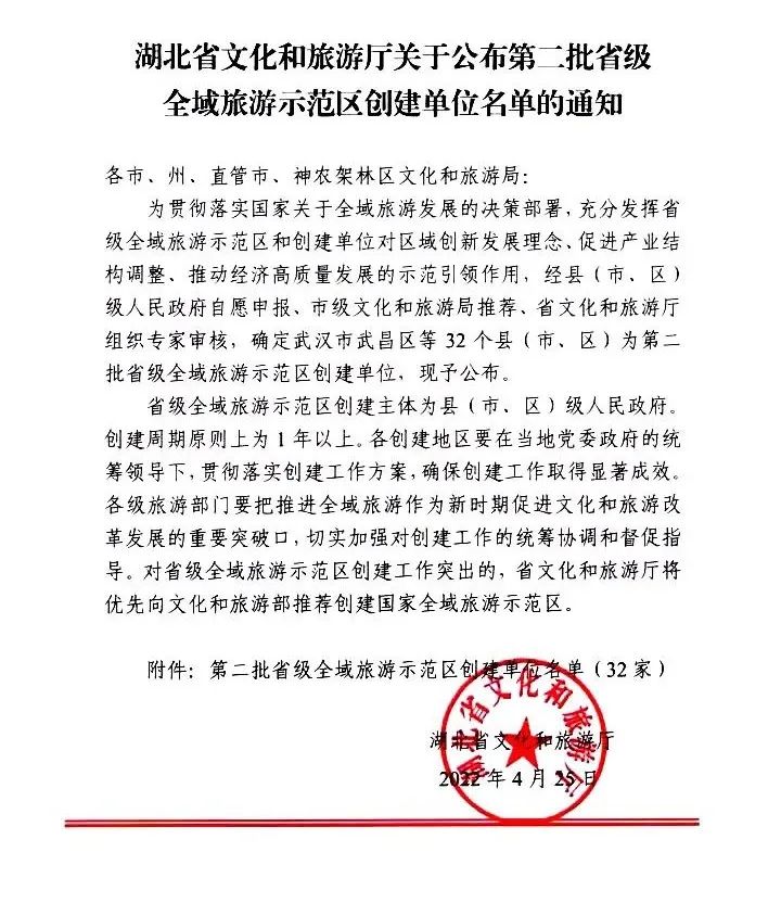 2022年4月,安陆市获批第二批省级全域旅游示范区创建单位。