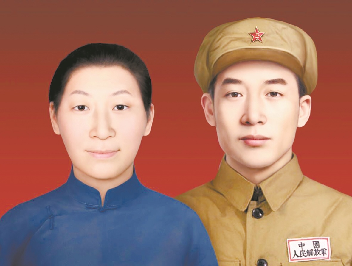 林宇辉:前段时间,山东省聊城东阿县有一个叫夏洪彦烈士的家人找我画像,夏洪彦牺牲时才27岁,结婚第4天就上前线了。一年后,其妻被告知丈夫在淮海战役中牺牲了,当时她仅18岁,一直也没有再婚,到现在已96岁了。我根据老人的描述和夏洪彦侄子的相貌特征,画了一张夏洪彦的画像。在了解故事的过程中,我得知老太太这么多年没有照过一张照片,谁给她拍照她都拒绝,我想,老人内心肯定是想有一张和自己丈夫的合影,于是我就根据她身份证上的照片推测出她年轻时候的相貌。我想用这样一个特殊的方式让他们团圆,满足老人的心愿。