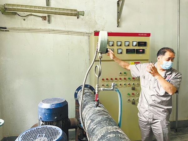 工作人员检查锅炉房动力配电箱。