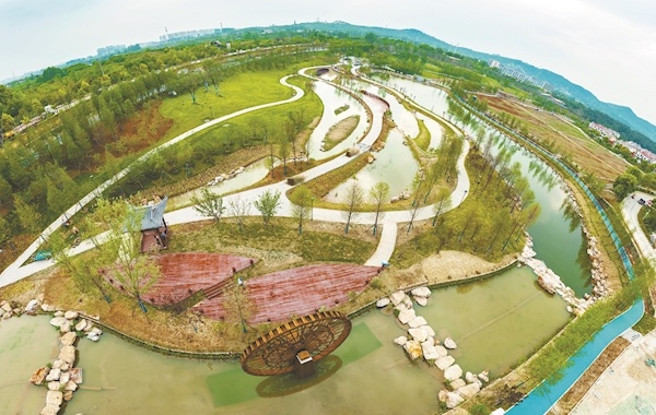 俯瞰襄水源生态公园,绿意盎然,生机勃勃。