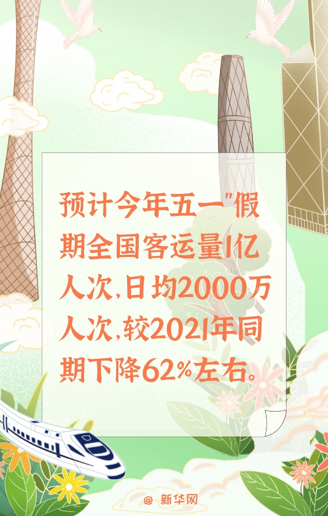 一是客流量较去年明显下降。预计假期全国客运量1亿人次,日均2000万人次,较2021年同期下降62%左右。