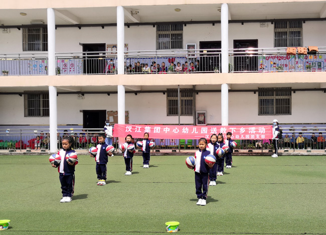 荆楚网(湖北日报网)讯(通讯员丁腊梅 许光泽)“少年志,则国志,少年富,则国富,少年强,则国强……”伴随斗志昂扬的《少年中国说》旋律,远道而来的汉江集团中心幼儿园8名孩子身着统一服装,展示特色篮球操,赢得龙山镇幼儿园师生阵阵喝彩。4月29日上午,汉江集团幼儿园帮扶送教交流活动在丹江口市龙山镇中心幼儿园精彩上演。