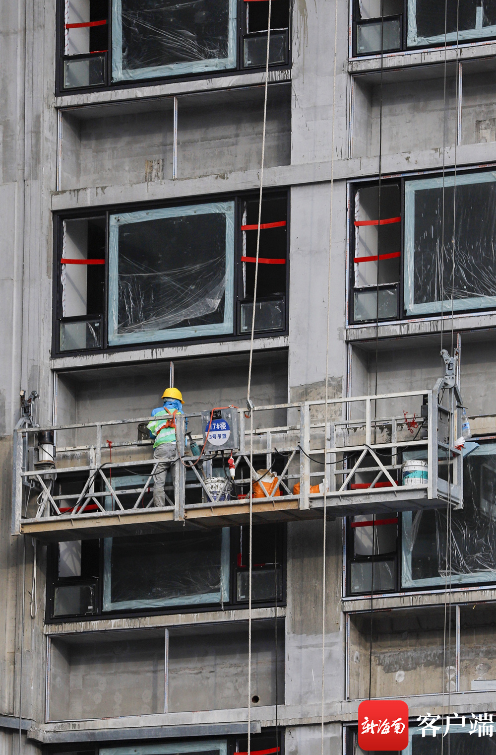 海口坡博坡巷棚改项目施工现场,工人在高空作业。记者 李昊 实习生 朱勃羽 摄