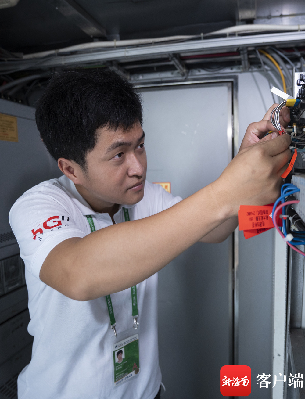 海南联通工作人员保障2022年博鳌亚洲论坛年会期间5G信号使用。记者 李昊 实习生 朱勃羽 摄