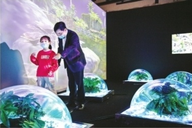记者逛一圈发现,与武汉其他商业体不同,万象城各品牌店铺之间,充满了艺术美感和武汉元素,融前沿风尚、格调社交、艺文美学为一体。从2号门一进去,便是《明日浪潮》艺术作品展。该展览是万象城与上海昊美术馆旗下艺术品牌How+合作,由ZUOYOU担任策展团队,创造性地策划了“雕塑+新媒体艺术+潮流艺术+艺术超市”的全场景艺术体验,在商业空间为市民提供美术馆观展体验。上午11时左右,入口处开始限流排队。家住附近的李先生,趁排队间隙给上小学四年级的儿子讲述展览背景,小朋友听得津津有味。他告诉记者,儿子喜欢看新潮科幻的展览,“一边逛商场,一边给孩子普及艺术美学,一举两得,以后我们会常常来。”