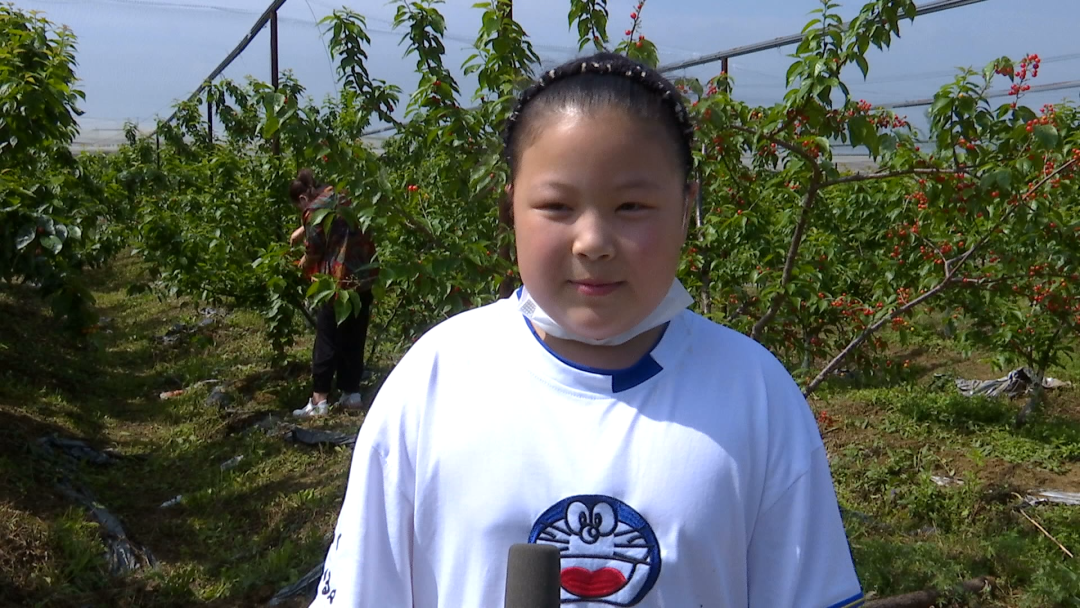 游客覃晗玥说:“听说这边有个樱桃园,我和奶奶一起来摘樱桃,这边樱桃很大很甜,摘樱桃很有趣。”