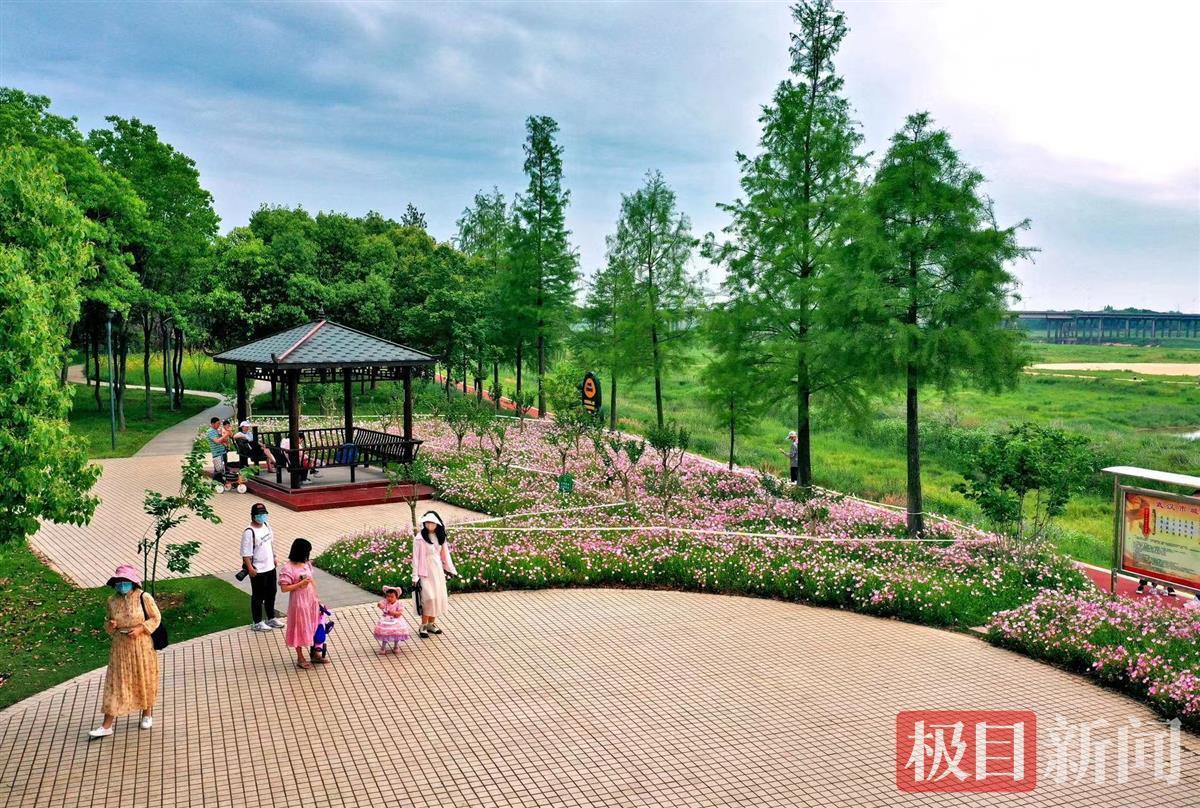老人唱戏、小孩玩耍……从邾城街举水河新大桥桥头漫步至举水河滩公园,随处可见前来休闲游玩的市民。粉嫩嫩的美丽月见草,黄灿灿的宿根金鸡菊花期正盛,2000余平方米的各色花卉让市民如痴如醉,仿佛置身花海,纷纷打卡拍照。