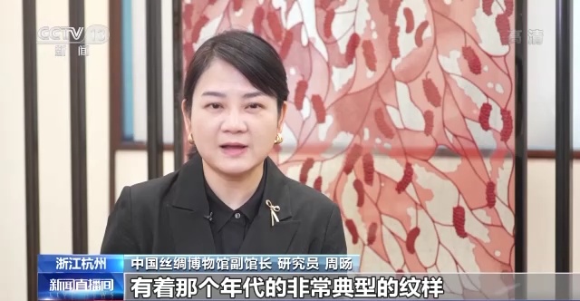 中国丝绸博物馆副馆长 研究员 周旸:非常惊喜发现距今1400年的丝绸,有着那个年代的非常典型的纹样,以及非常难得一见的织造工艺,色彩保存也相对比较完好。