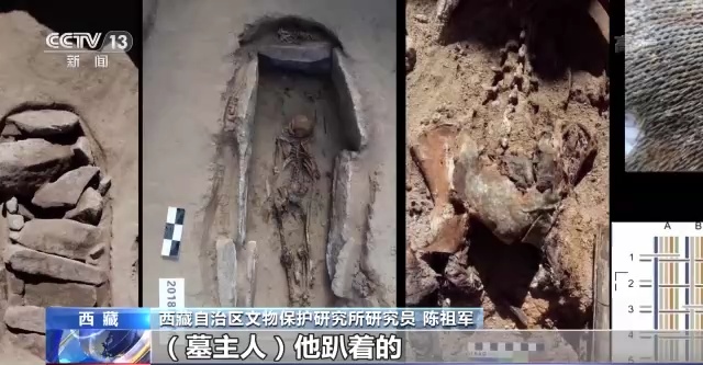 西藏自治区文物保护研究所研究员 陈祖军:是门当乡的欧聂墓地,(墓主人)他趴着的,(丝织物)就覆盖在他的盆骨上,这样盖着的。这是非常重要的发现。