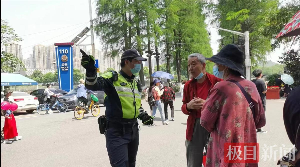 5月3日上午,在花博汇景区入园口,随着游客逐渐增多,蔡甸区公安分局大集街派出所副所长燕占飞拿着喇叭,和志愿者一起组织游客入园核酸检测、落实健康码、测温消毒,解答售票咨询、路线询问等,帮助合理控制游客数量;在园区停车场及门口主干道,蔡甸区交通大队组织汉警快骑有序引导车辆通行,合理调整红绿灯配时;景区内,蔡甸警方还专门组织了一支巡逻队开展不间断巡逻,随时接受群众报警求助。5月2日下午3时许,陈女士在园区内游玩,其小孩不慎走丢。接警后,在景区巡逻的民警立即赶到现场,通过调取监控很快将小孩找到。