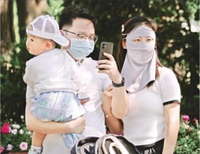 “太阳看着晒,但不算太热,这个天气出来玩最舒服。”的确,昨天紫外线强度为3级中等,最高气温28.3℃,气候宜人。今天是五一假期最后一天,还想抓紧时间外出游玩的市民注意了,今天的最高气温将站上30℃,紫外线强度预计为4级,大家在户外活动时需注意防晒,尽可能站在阴凉处。 市民防晒装出游。