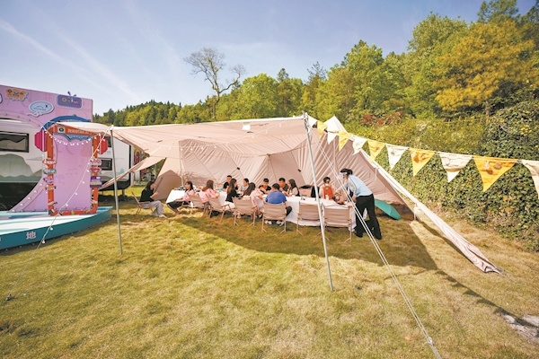 下午三时过后,露营地迎来一天中最热闹的时段。精致的下午茶、现场音乐会、魔术表演、露天电影等丰富活动轮番上演,将散落在各个区域的游客吸引到一起,是朋友聚会的快乐片段,亦是亲子家庭的温馨时光。