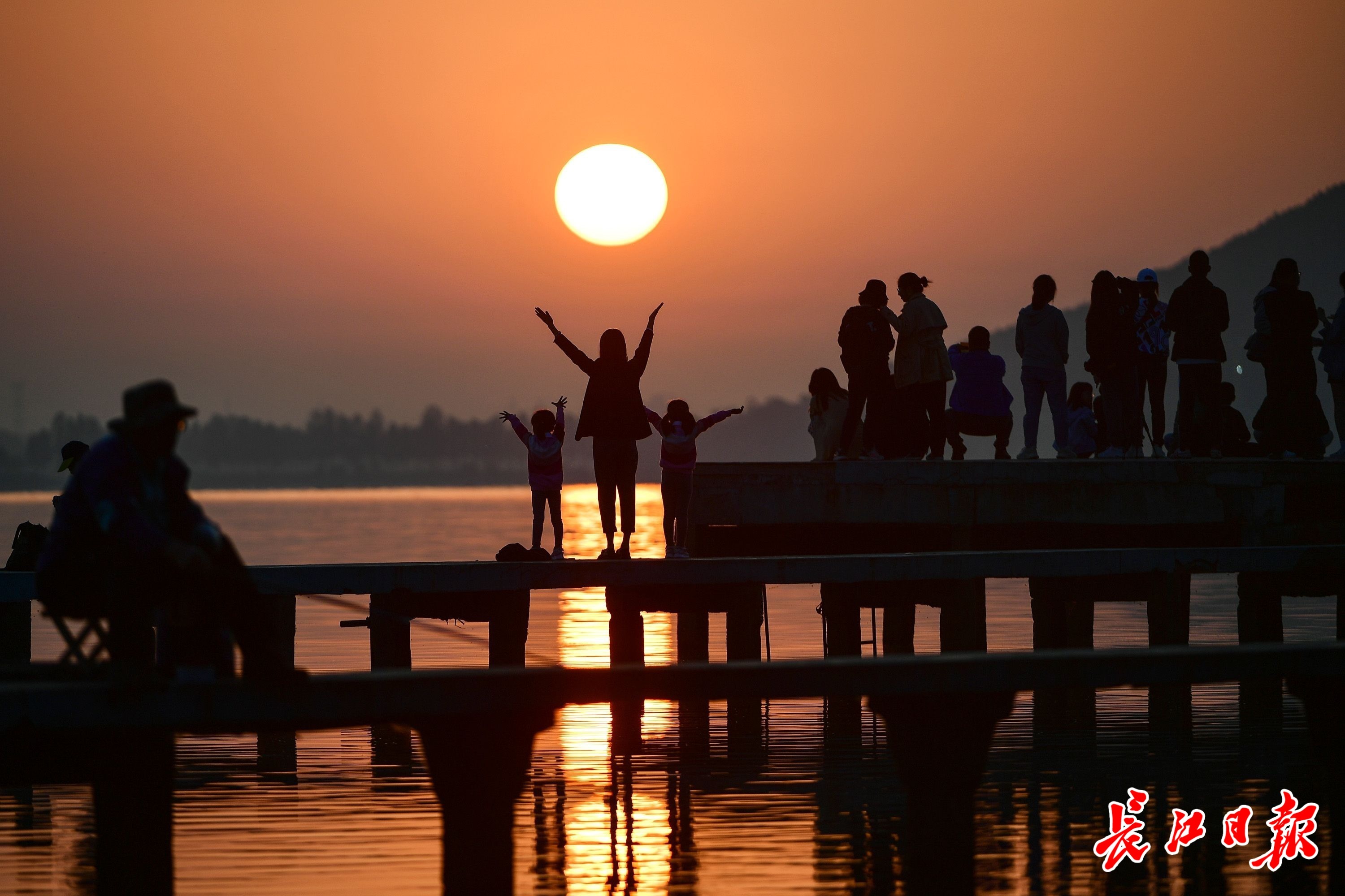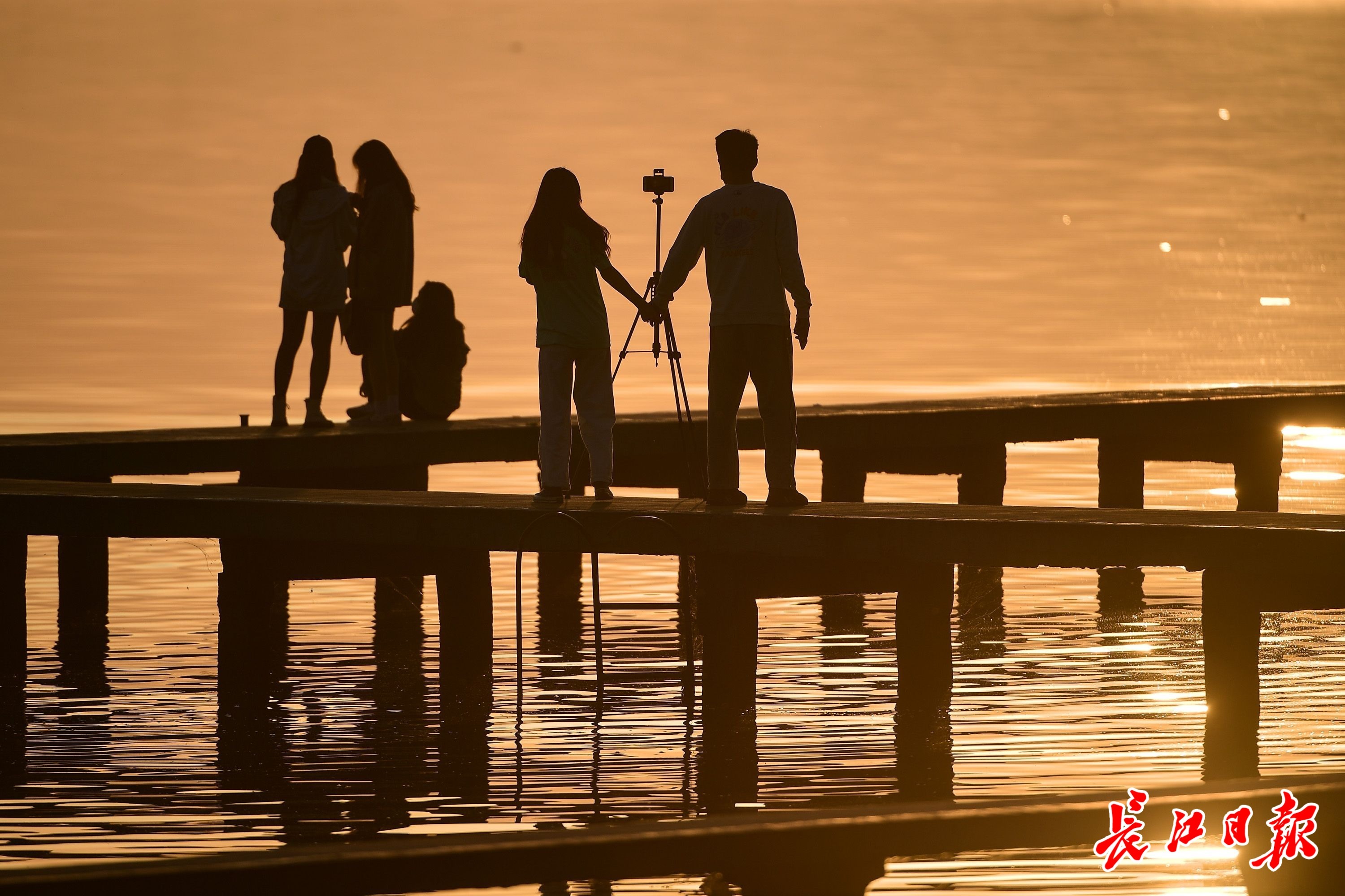 长江日报大武汉客户端5月4日讯 5月4日是国际青年节,清晨5时,不少大学生和市民等候在武汉市东湖凌波门湖边,准备迎接当天的第一缕阳光。在金色朝阳照耀下,一张张青春的面孔朝气蓬勃,活力无限。