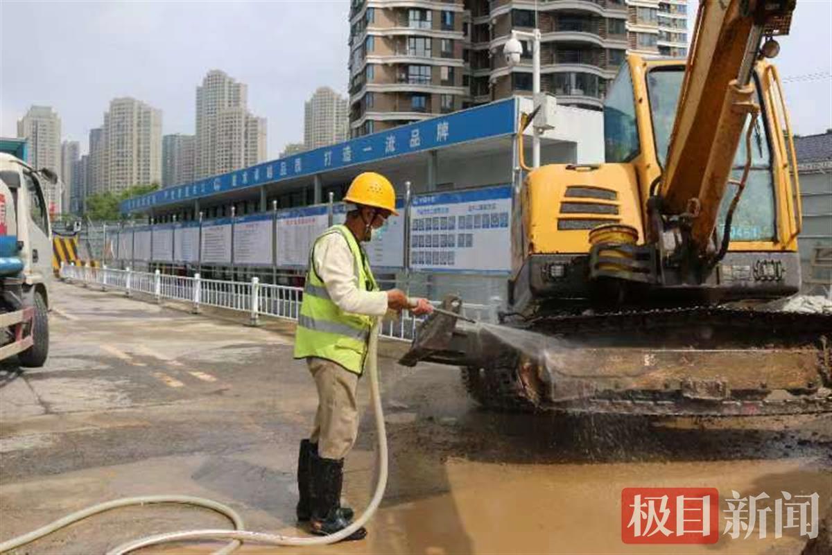 在博览路地铁站施工现场,挖掘机正在作业。张孝兵说,博览路地铁站为地下二层单柱岛式站台车站,采用明挖法施工。目前维护结构已经完成,正在挖土,为今年下半年的盾构始发做准备。