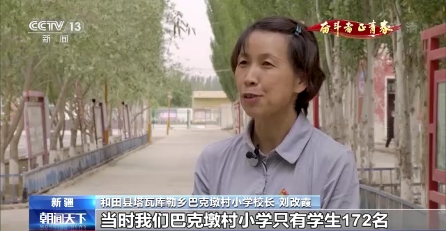和田县塔瓦库勒乡巴克墩村小学校长 刘改霞:当时我们巴克墩村小学只有学生172名,但是到校率很低,上课的时候老师发现班里没几个孩子,还要到家里去找,班级的及格率不足10%。