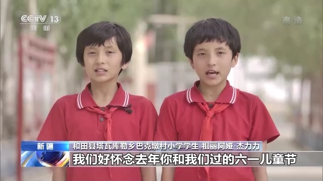 和田县塔瓦库勒乡巴克墩村小学学生 祖丽阿娅·杰力力:我们好怀念去年你和我们过的六一儿童节。